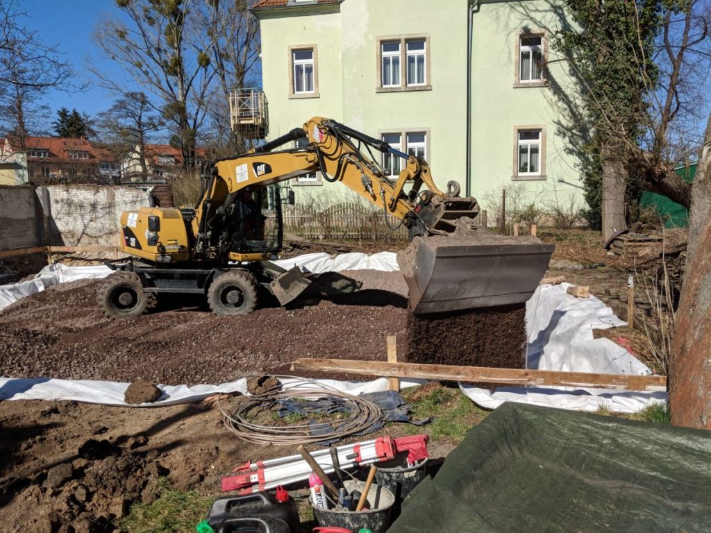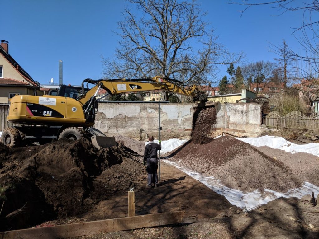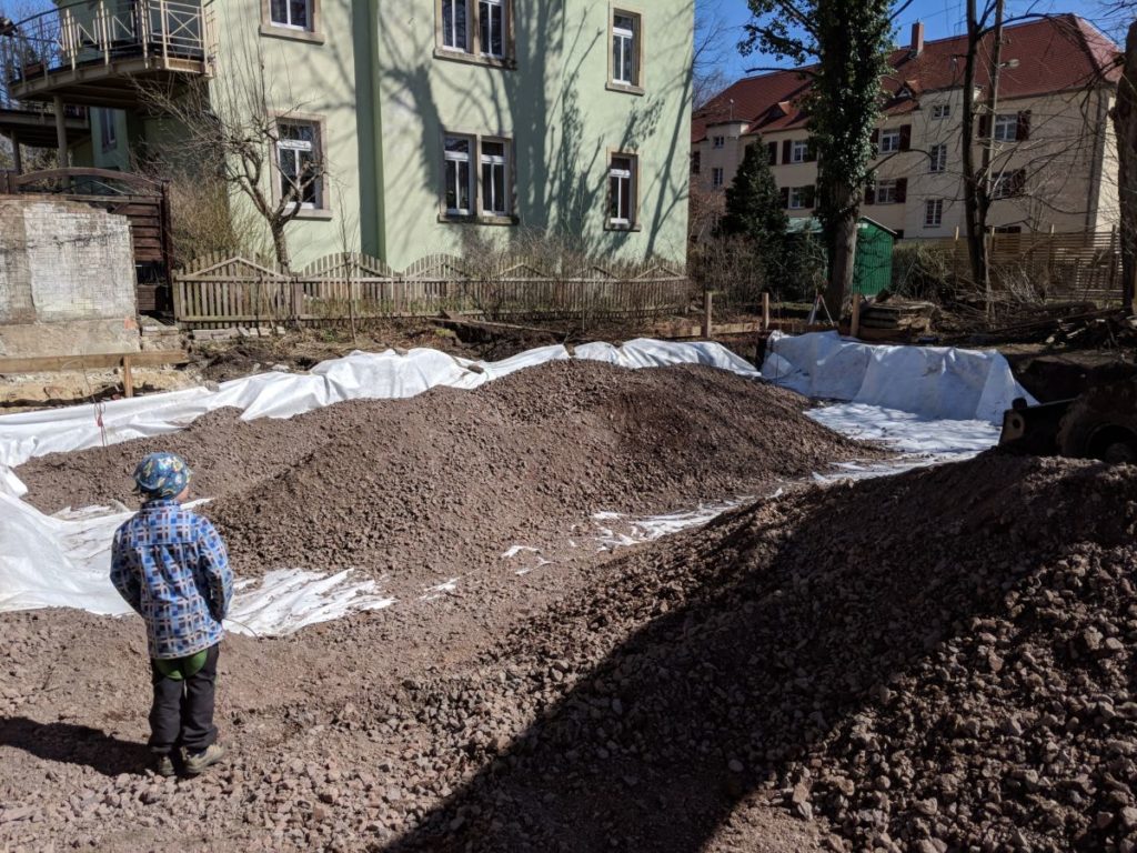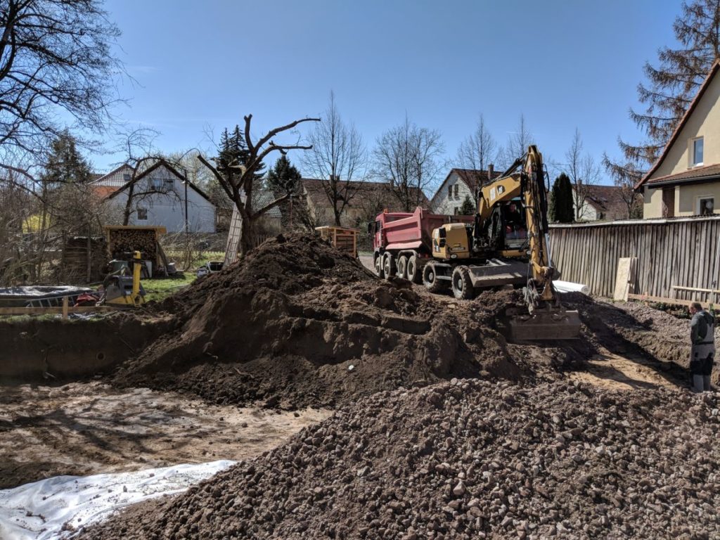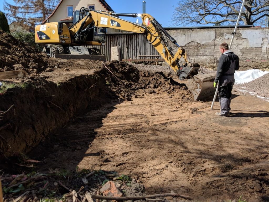 Der Bodengutachter war nicht sehr erfreut, dass er nicht die ganze Baugrube sehen konnte, aber das klappt mit dem Zu- und Abtransport nicht. Für mich sah die Lehmschicht überall gleich und gut aus.