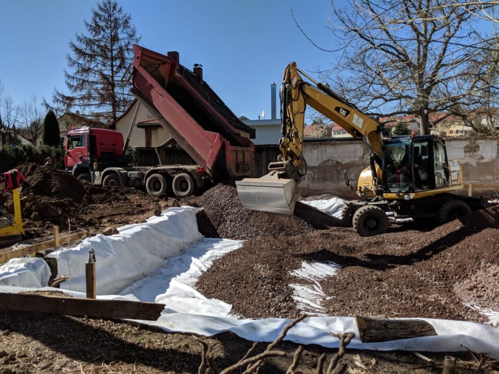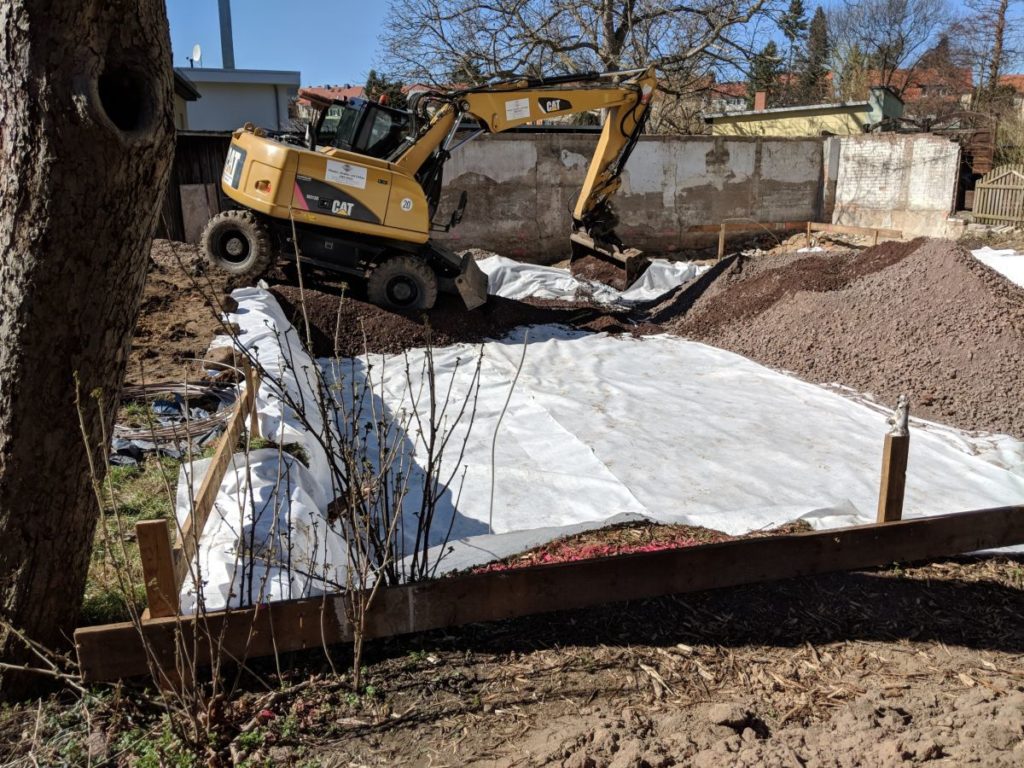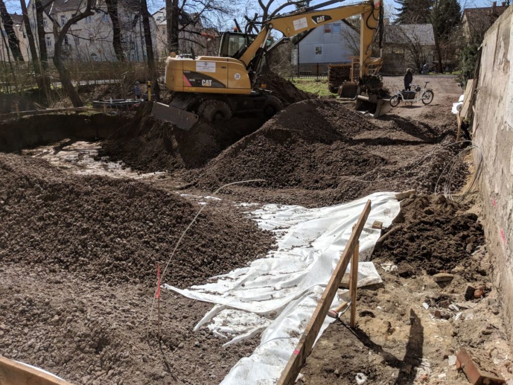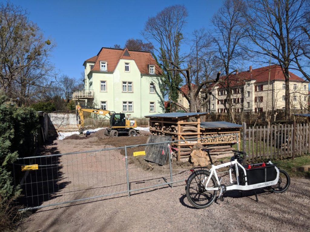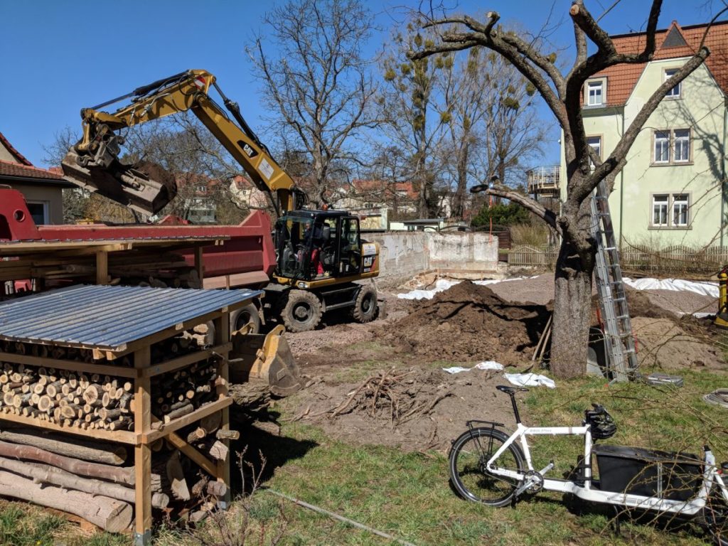 Heute in der Mittagspause angereist, im Bullitt Axt und Drehschagschrauber. Mit der Axt hab ich ein paar Wurzeln von der Robinie entfernt, die der Bagger hochgerissen hat.