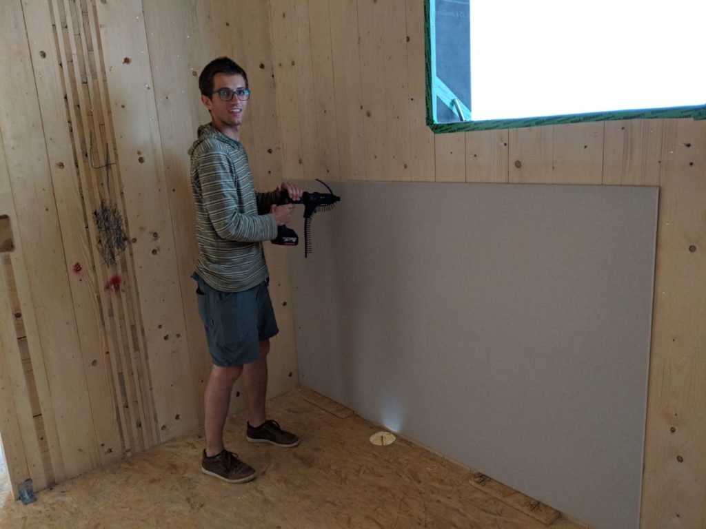 Zwischenzeitlich wurde Gipskarton geliefert. Der Trockenbau kann starten.