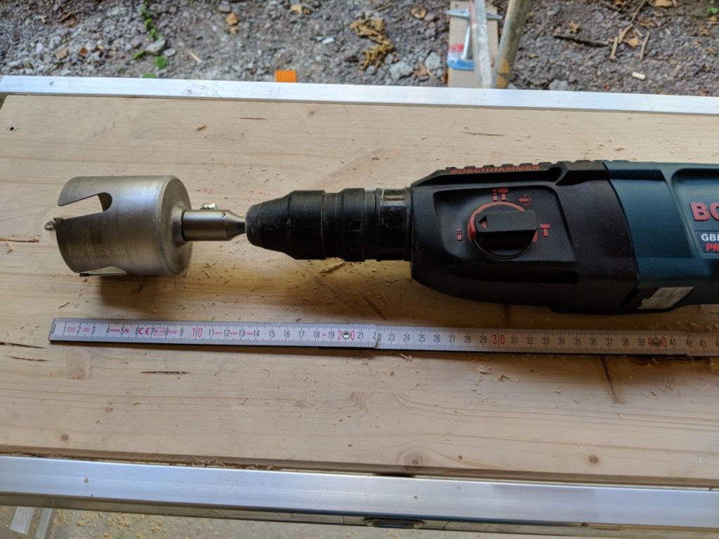 Ach, jetzt zersäge ich einfach den improvisierten Tisch der Bauleute und nutze die Platte für meine Zwecke…