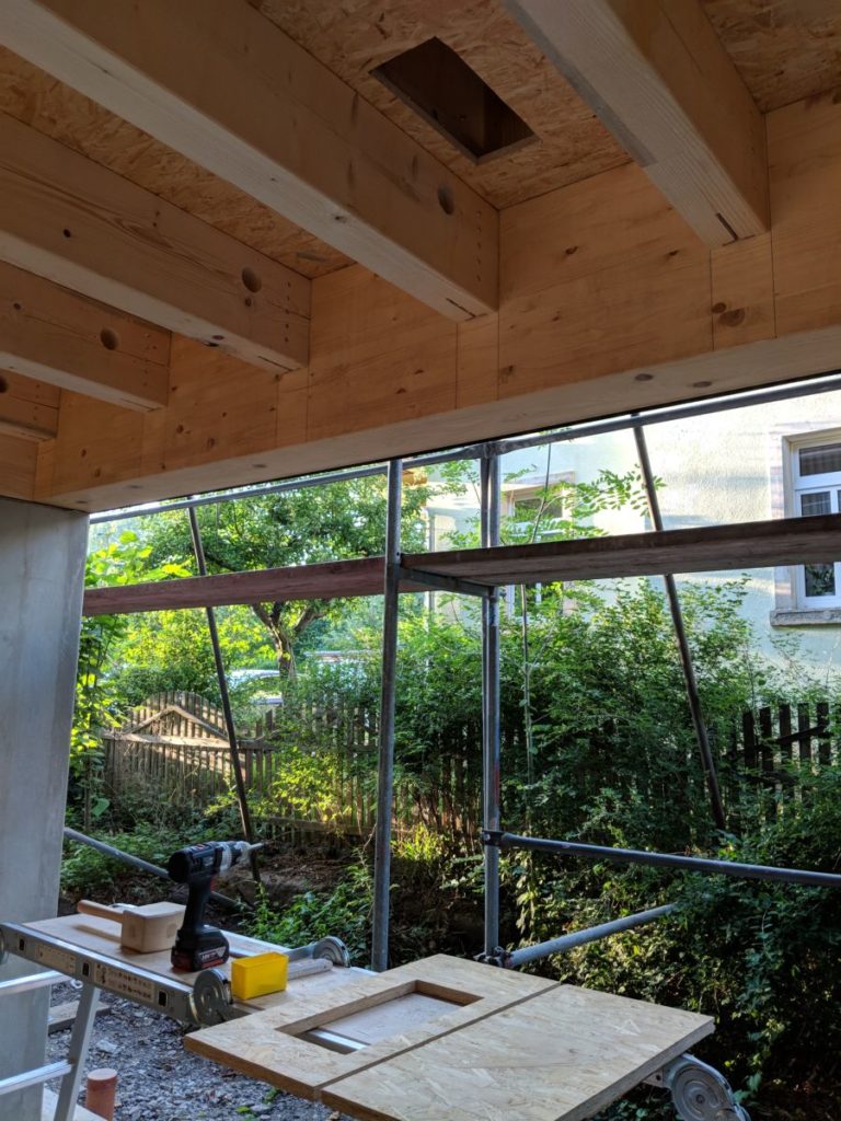 Der Dachaufbau ist zwischenzeitlich auch vorangekommen.