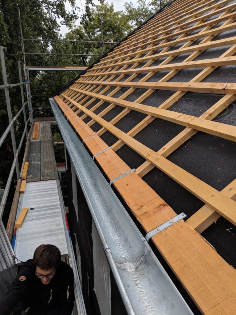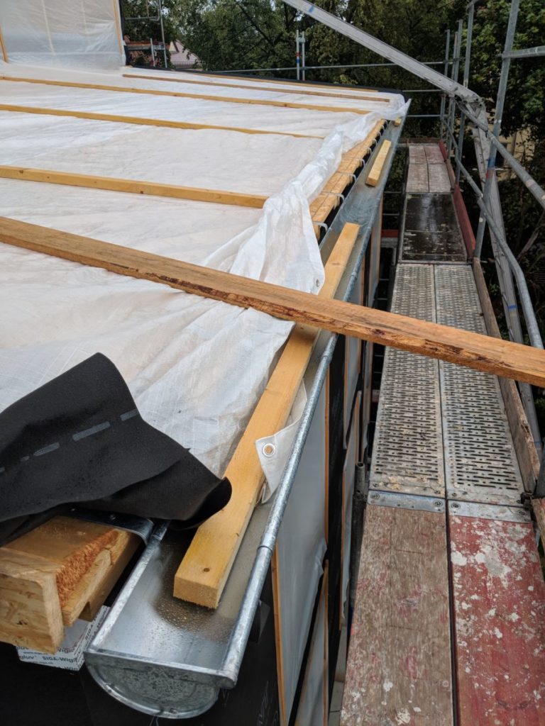 Mal gucken was die Dachdecker bei dem Mistwetter so treiben… Dachrinnen, wie passend.