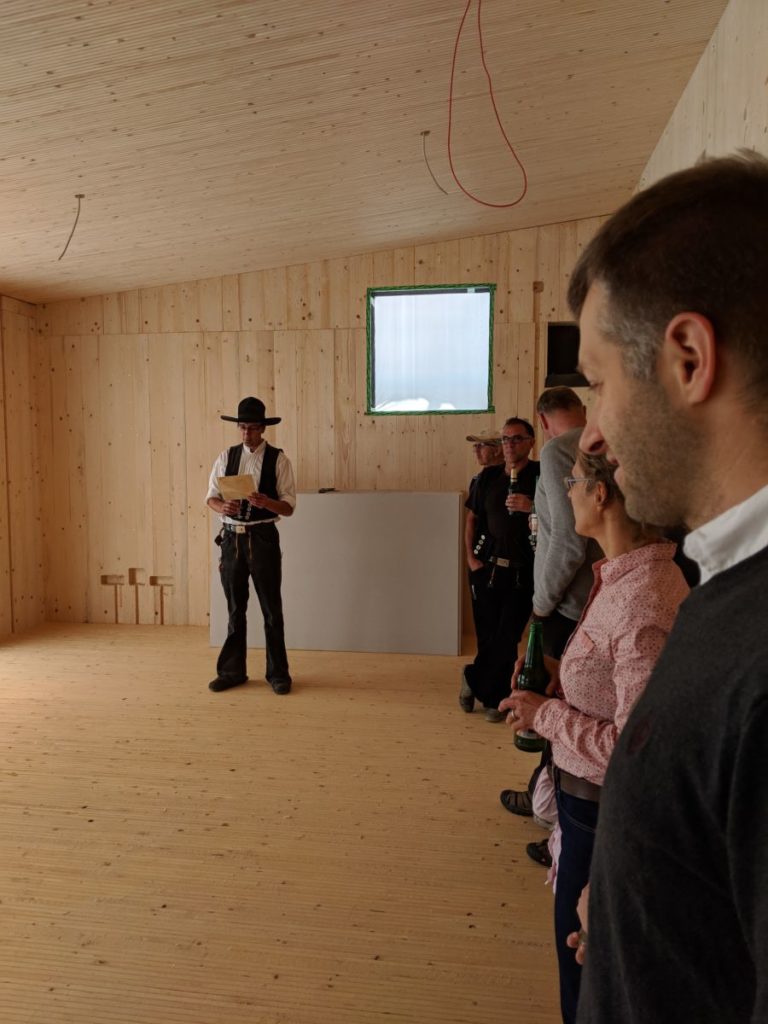 Es ist Richtfest – Bier und Würstchen. Die netten Nachbarn sind gekommen, die Zimmerleute sowieso, Familie auch.