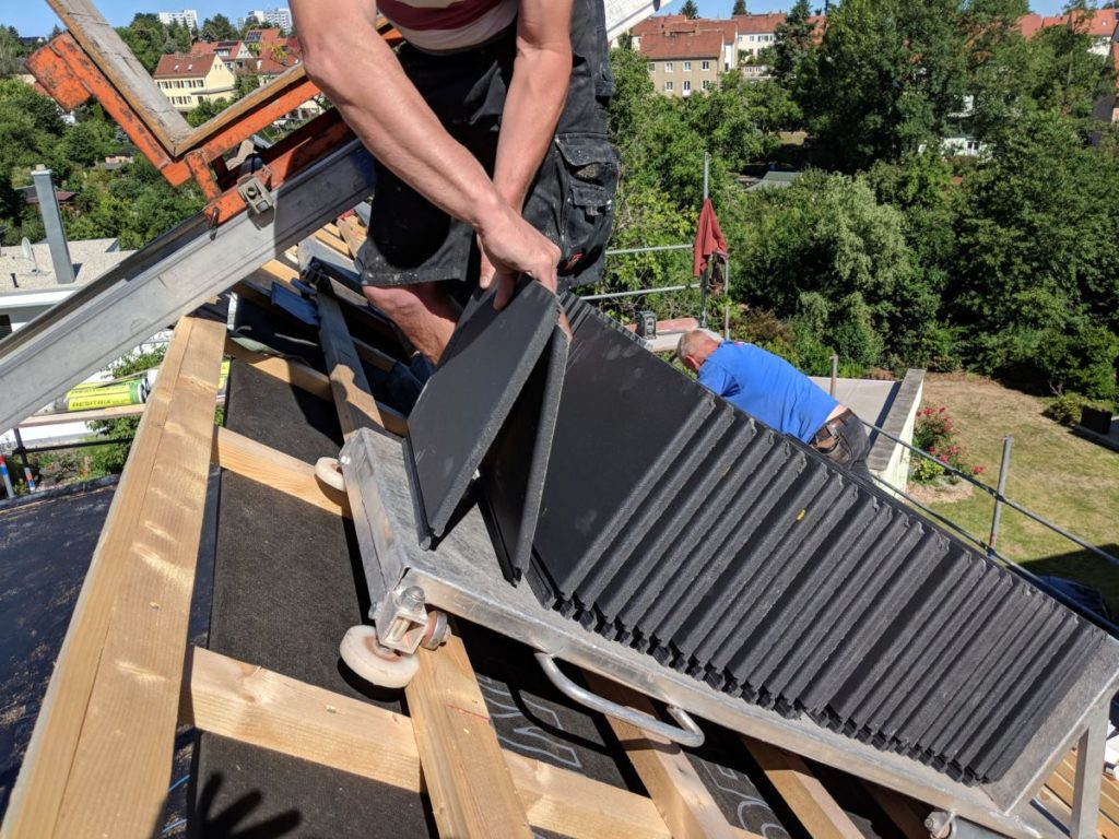 Die Sportfreunde fahren gern mit dem Materialaufzug, ein recht geschundenes Ding. Heute gab es einen lauten Knall – das Ding ging zu Boden… zum Glück waren nur ein paar Ziegel drauf.