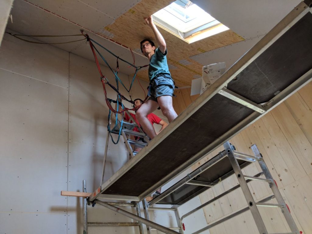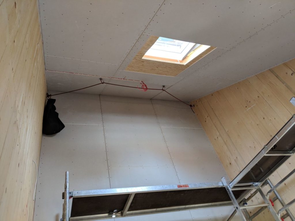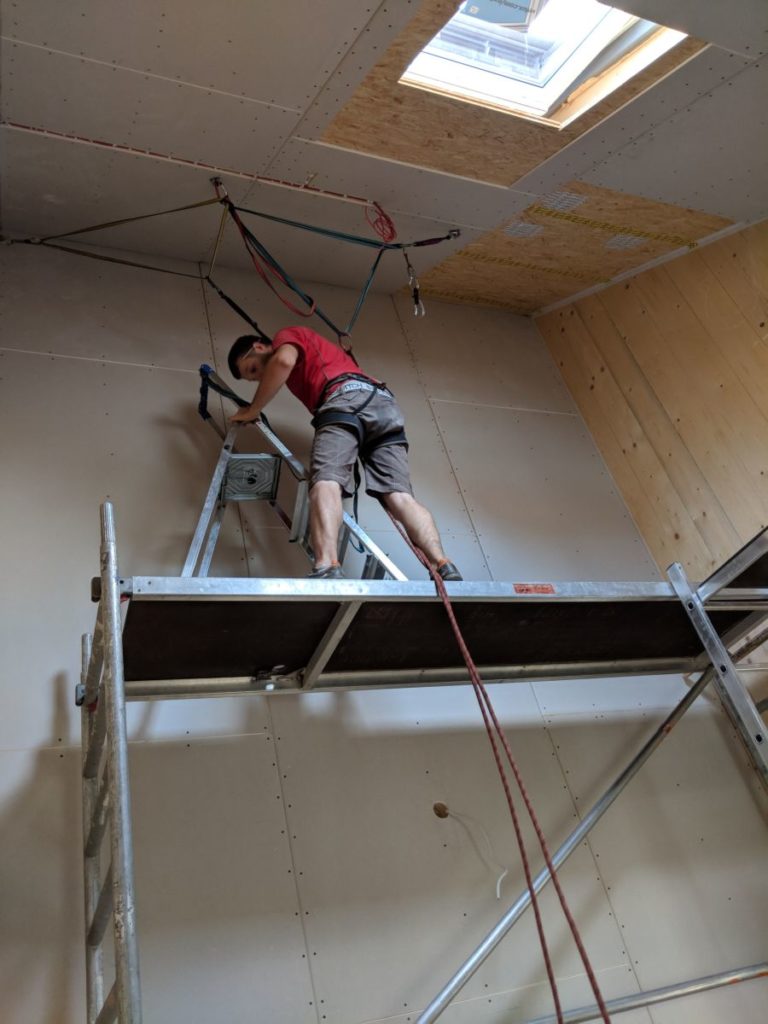 Autor Der BauherrVeröffentlicht am Juli 21, 2018Juli 22, 2018Kategorien Bau, Eigenleistung, InnenausbauSchlagwörter Gipskarton, Schlafzimmer, Seiltechnik, Trockenbau