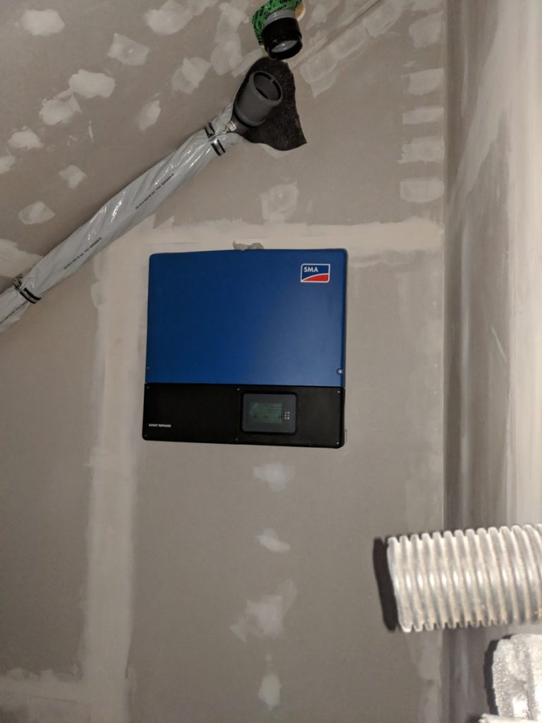 Auch den Wechselrichter haben sie noch schnell angeschraubt.