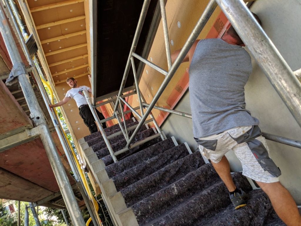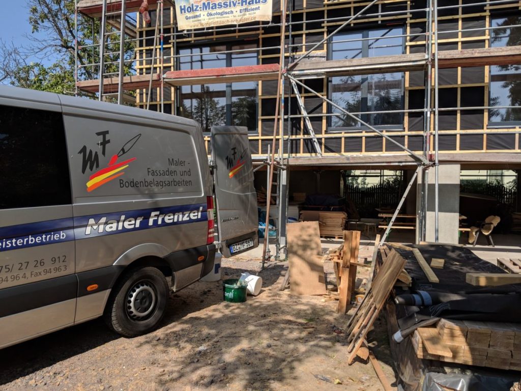 Außen betätigen sich die Maler an der Putzfassade.