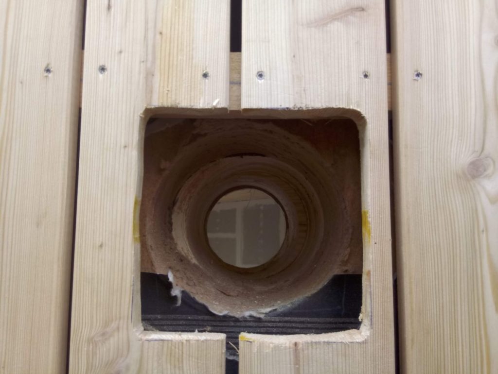 Nach stundenlangem Bohren wird dann noch mit Hand nach gearbeitet, da man ja nicht eckig bohren kann.