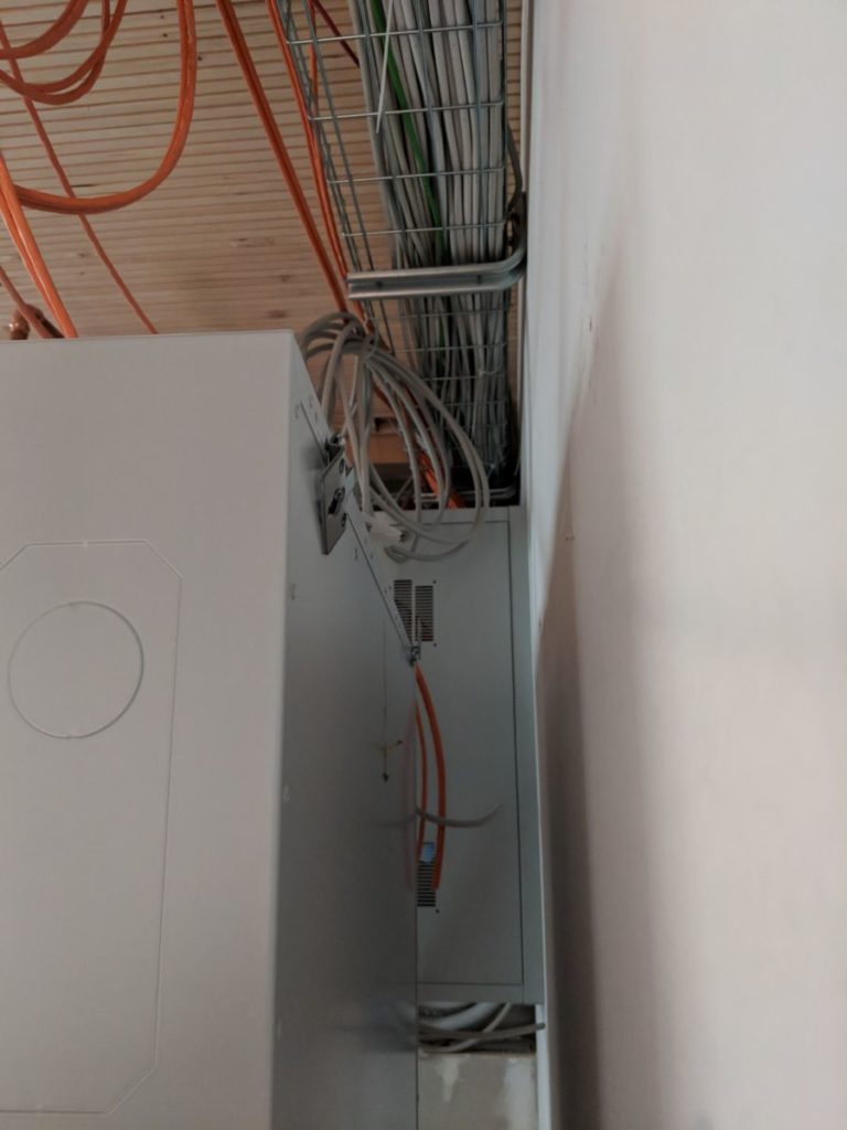 Den Schaltschrank hatte ich zum Verfugen der Fliesen nochmals verrückt, nun muss ich ihn richtig anschraueb. Er war schief, da oben solche Abstandshalter genutzt wurden, obwohl unten kein Abstand war. So konnte ich früh erstmal ein paar Minutem mit ausreichten und Anschrauben verbringen. Dabei habe ich mich auch nicht mit Ruhm bekleckert, denn die Wiener Schrauben 6,0×80 sind einfach abgerissen, bevor sie in der Wand waren.
