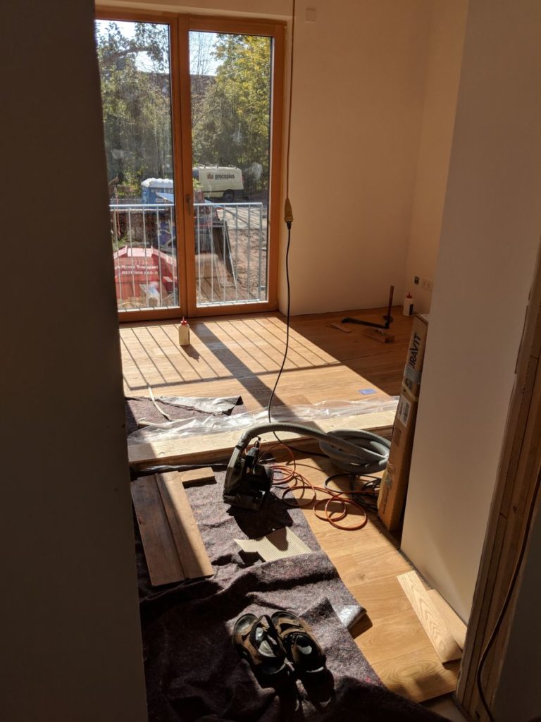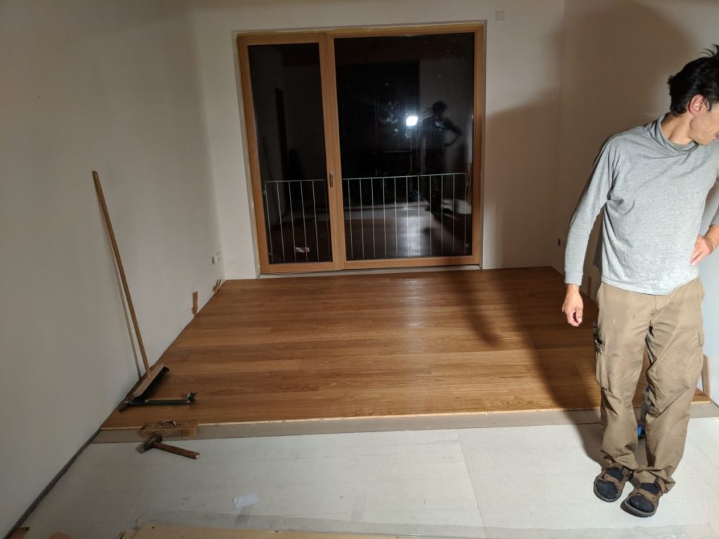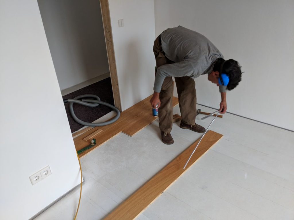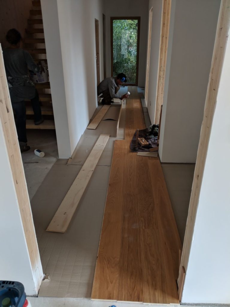 Im Flur geht es weiter. Ich bin wahnsinnig froh für den Start kompetente Hilfe zu haben, sonst wünsche man gar nicht wo und wie man anfängt, wenn alles immer herum rutscht.