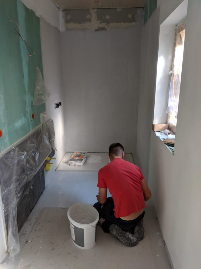 Das Badfußboden wird weiter versiegelt.