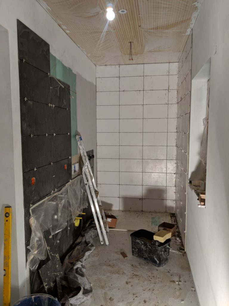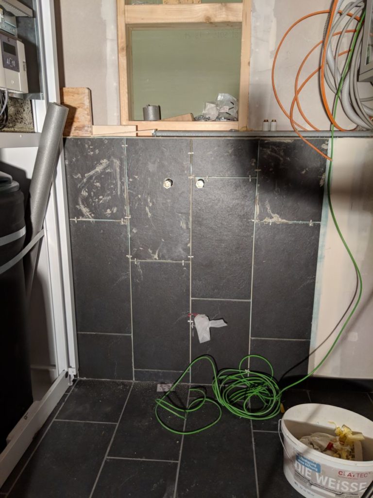 Flott den Rest im Technikraum noch ankleben, damit der Ausguss montiert werden kann.