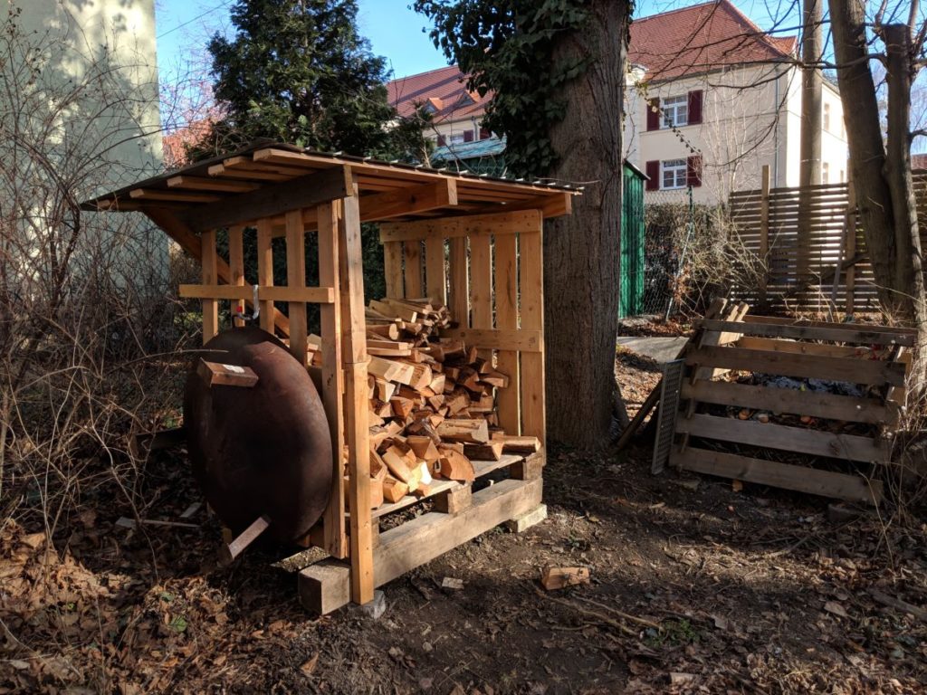 Nun ist das „gute“ Feuerholz für den Ofen im neuen Stapel und unzählige Billig-Paletten fürs Lagerfeuer zersägt.