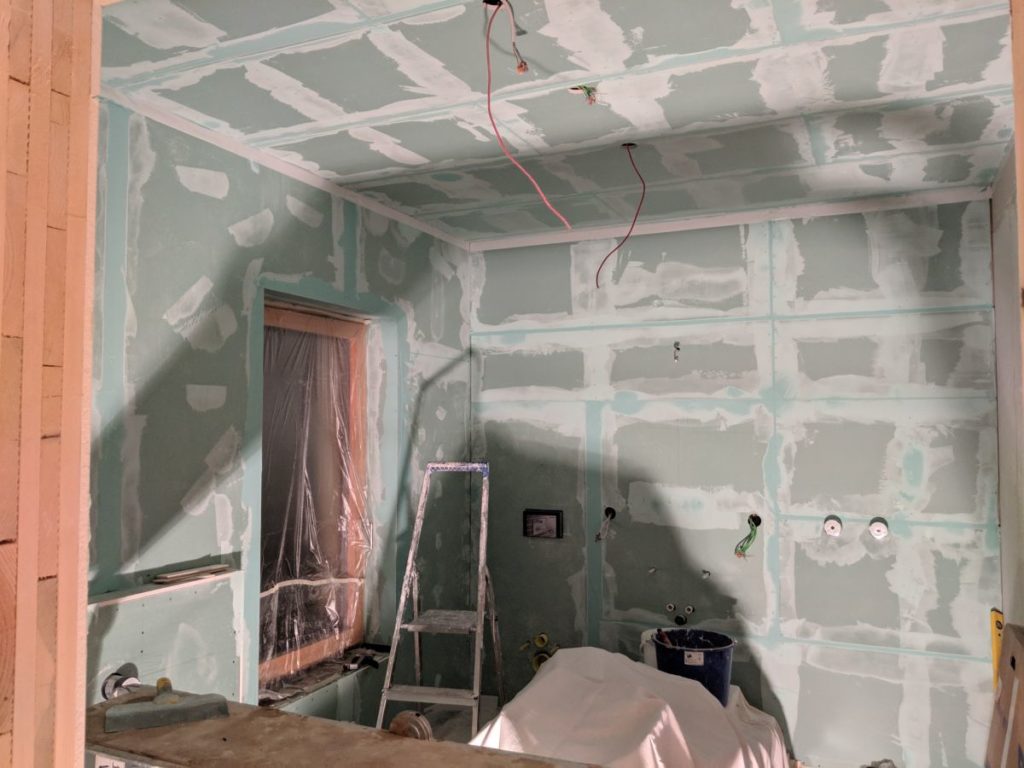 Fehlt nur noch bisschen Spachtel, die Farbe kommt, wenn Schlafzimmer und Bad weiß werden.