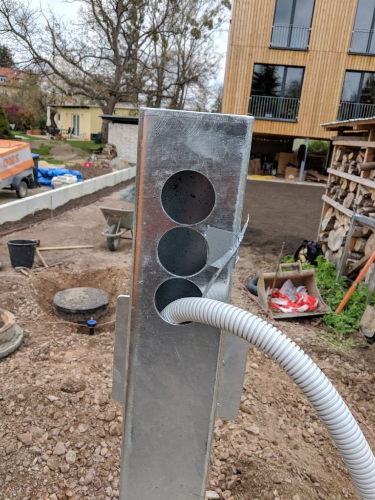 Die drei Löcher – die planerische Mühe ist nicht zu sehen. Hoffentlich funktioniert es einfach.