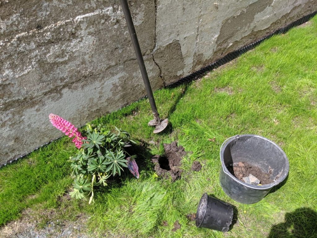 Der Fiskars Handerdbohrer QuickDrill (L 200 mm), eigentlich für den Zaunbau gekauft, aber der Zaun kommt ja nicht.