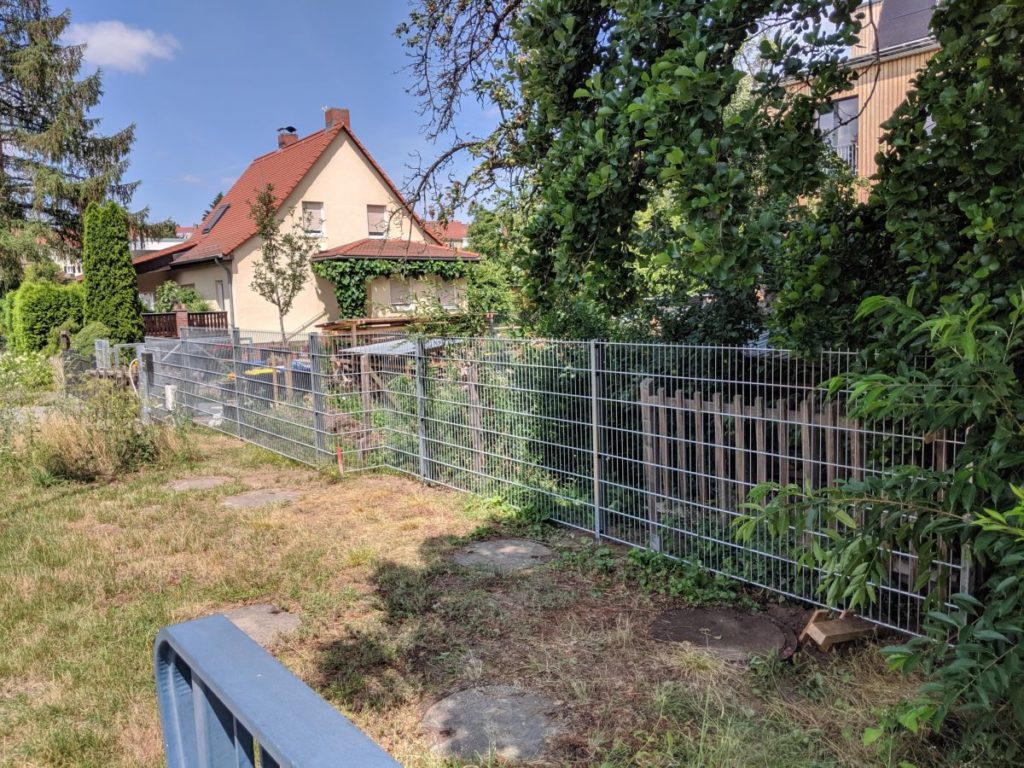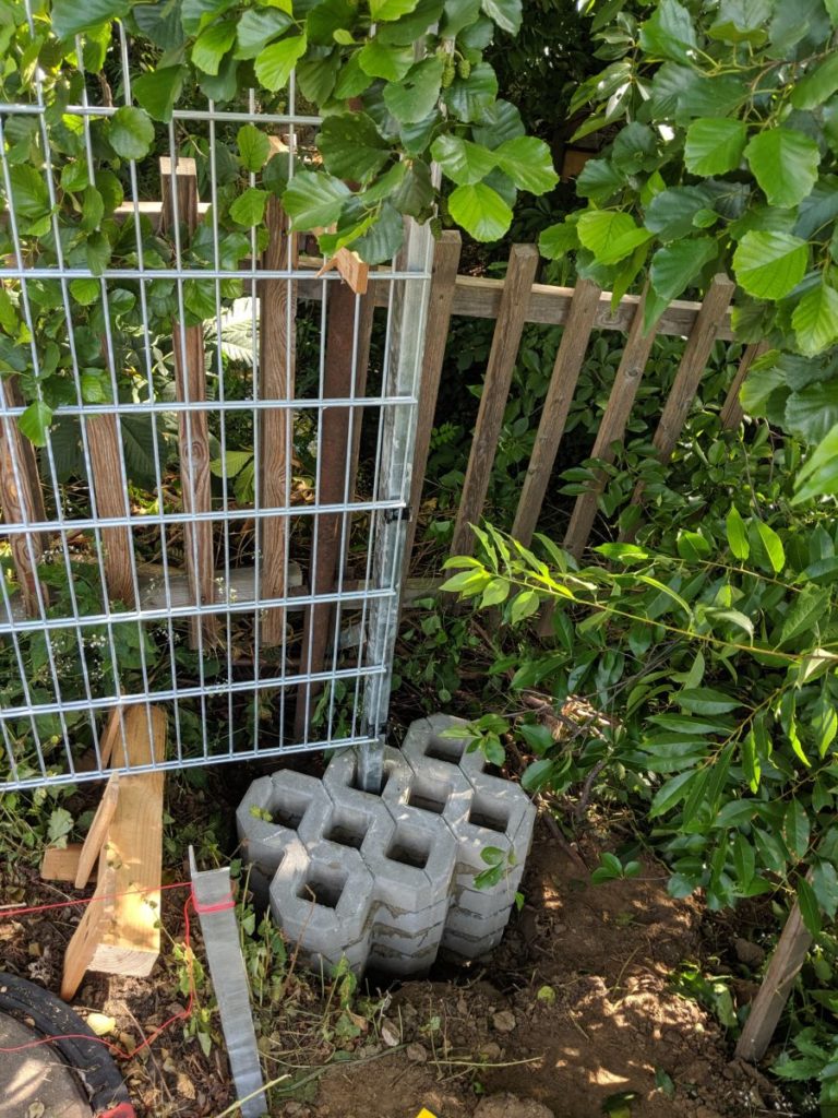 Hier Fehlt bisschen die Substanz. Um nich so viel selbst Mörteln zu müssen hab ic h fünf (billige) Rasengittersteine aufgemauert.