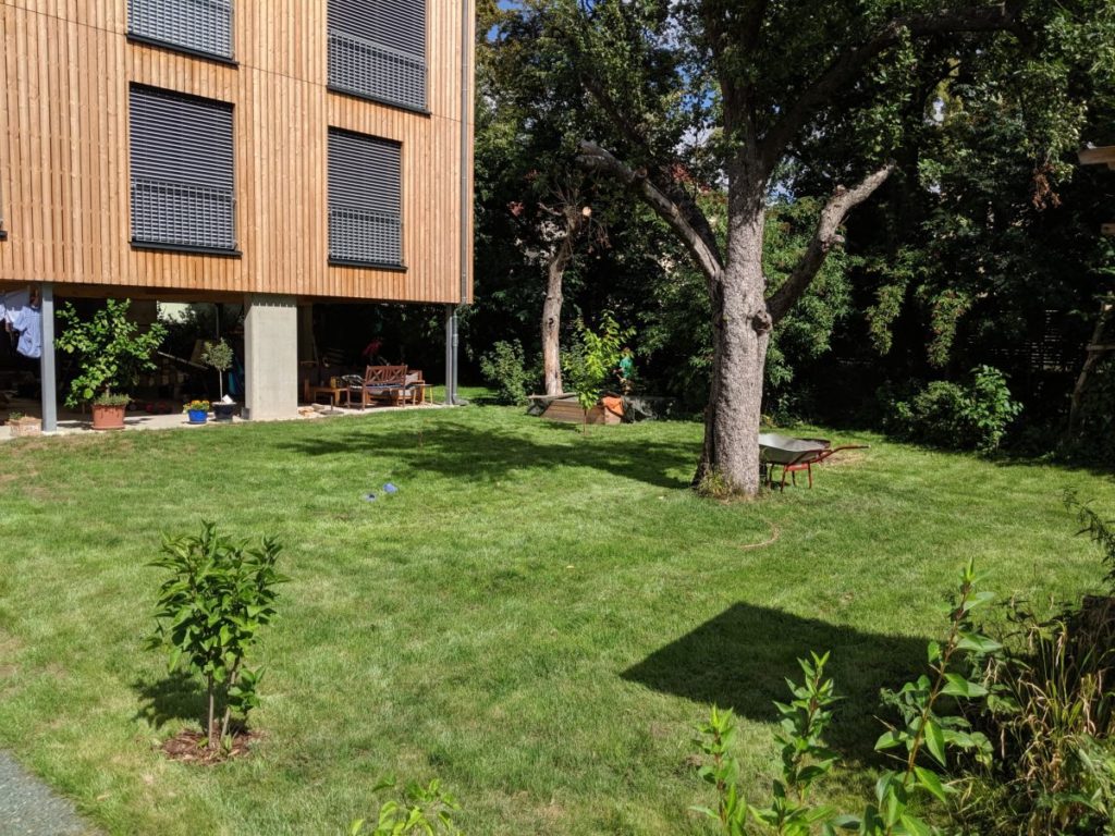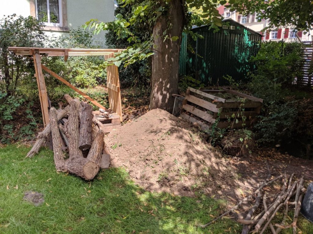 Der Haufen musste Weg. Unglaublich, was für theoretischer Planungsaufwand für die Einfahrt gemacht wurde, jetzt habe ich mit der Schaufel alles so weit umgestaltet, dass sogar der Zaun nur eine kleine Stufe braucht.