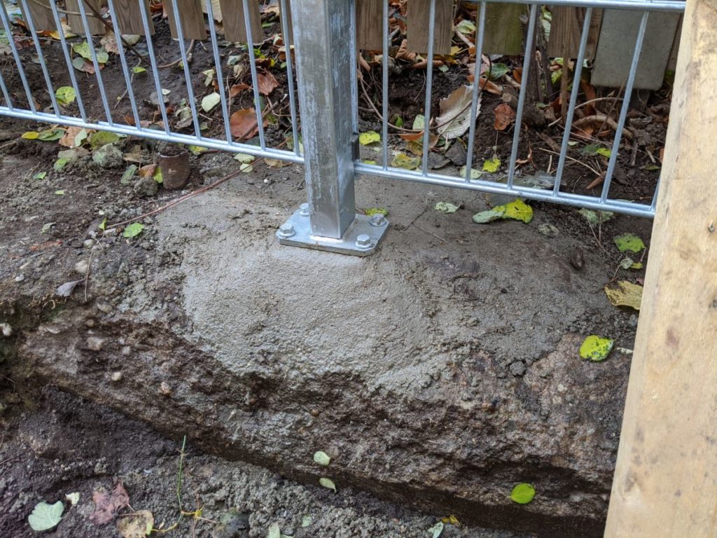 Mit meinem kleinen 3 kg Bosch GBH konnte ich den Beton am Busch weg stemmen und so weit abtragen, dass mein Zaun ungehindert durchlaufen kann. Die Hälfte des alten Fundamentes erledigte der 8 kg Hammer.