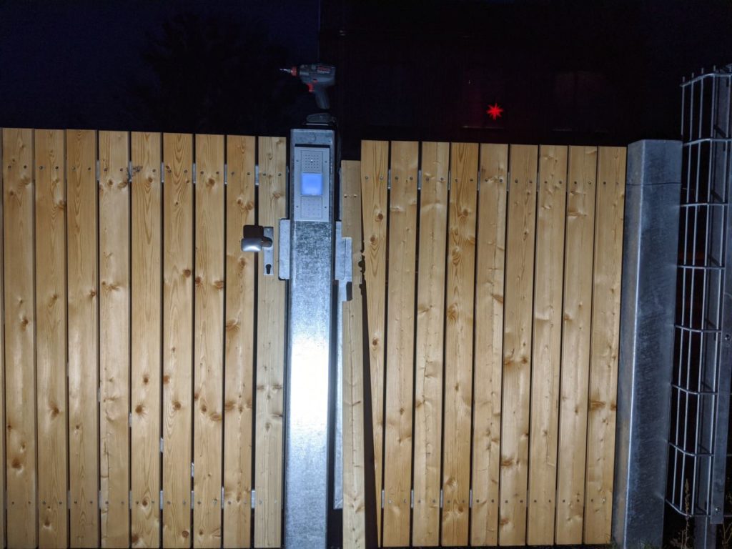 Nach langem Suchen haben wir die Türgriffe beim lokalen Schlüssel-Metz bekommen. Nun können endlich die letzten Latten ran.