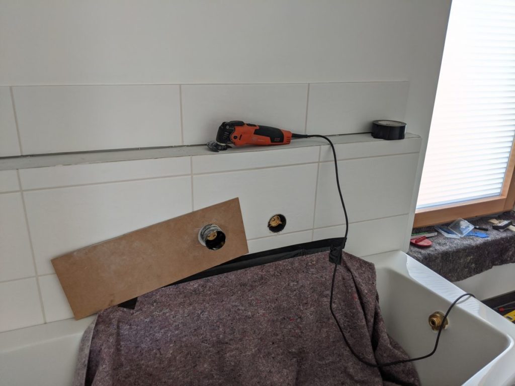 hat geklappt, die Wanne sitzt fest an der Wand.