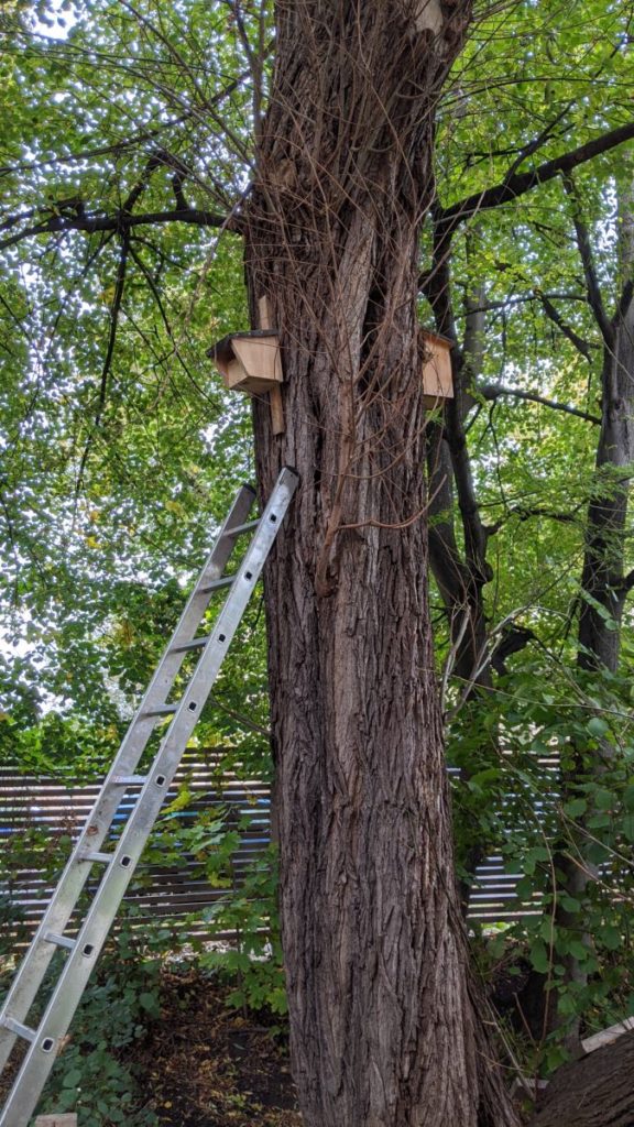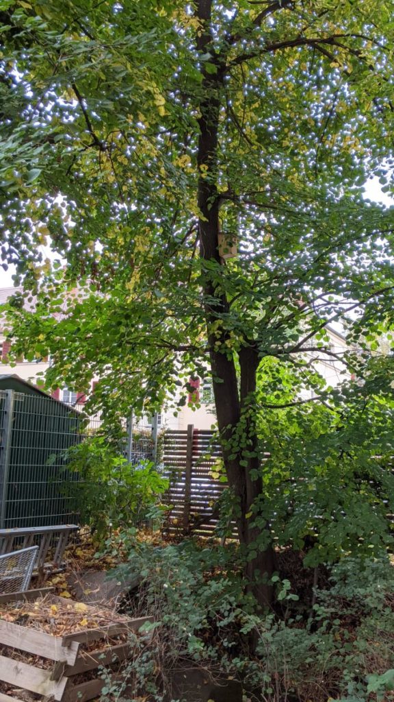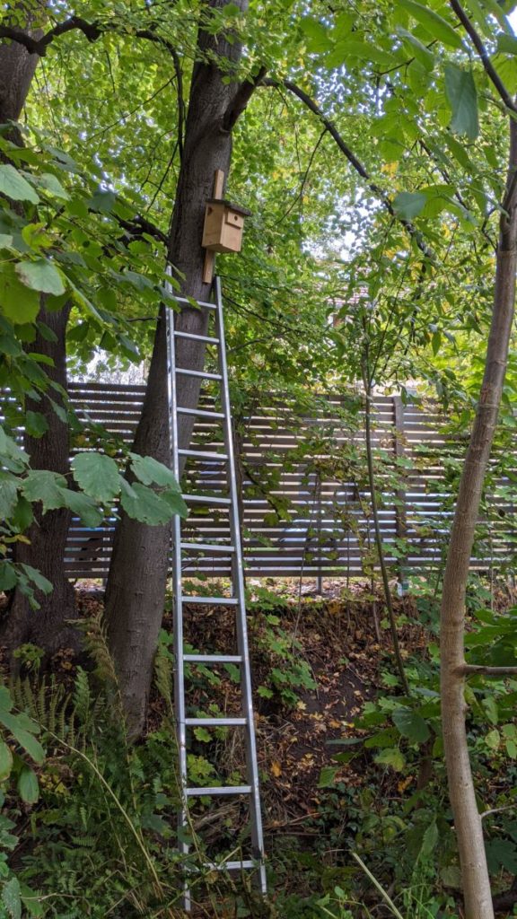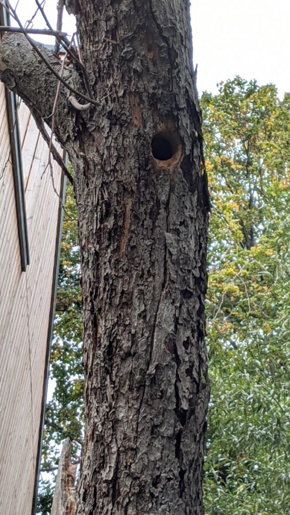 Und der Specht hat sein Loch schön vergrößert (vorher). Jetzt kann ich den Baum erst einmal nicht weiter einkürzen.