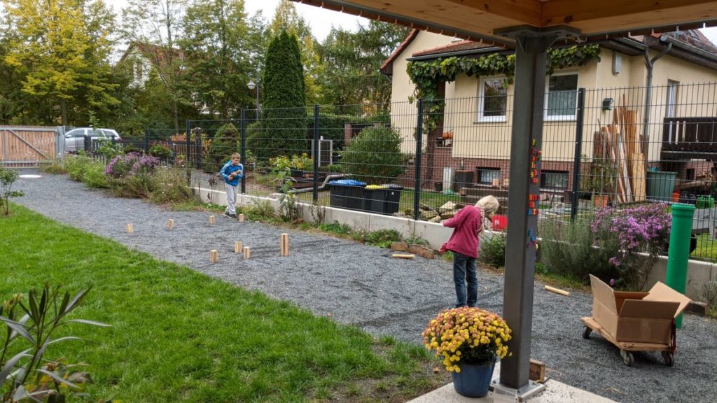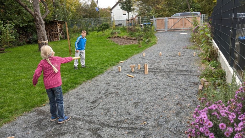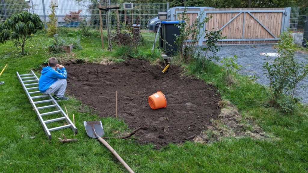 Gully oder Auslauf? Es wird ein Auslauf, das Gefälle reicht und das Problem mit der fehlenden Erde ist gelöst.