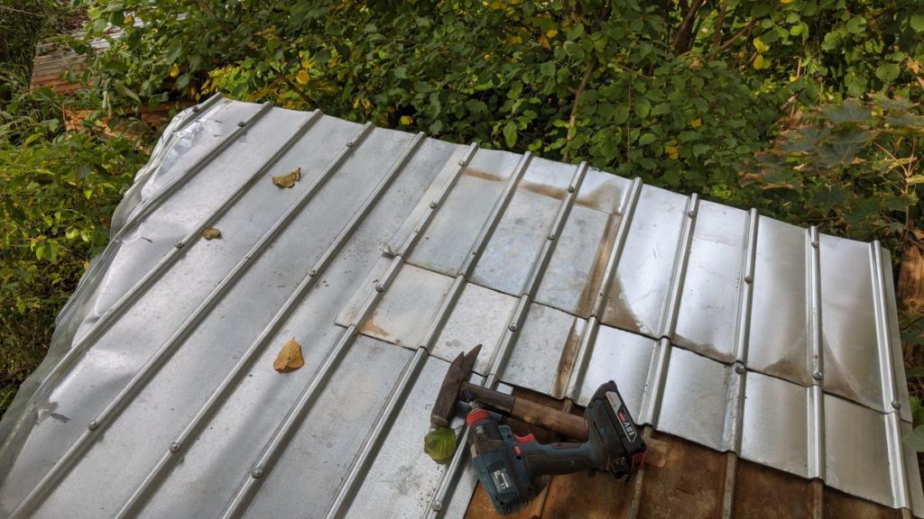 Das Dach wird fertig Das Blech bekommt unter den Erlen eine rostfarbene Auflagerung – fast wie Cortenstahl