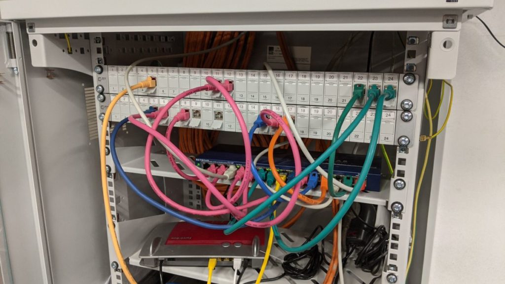Gleich noch die Switches umsortiert, befestigt und den alten Gigabyte-Switch in betrieb genommen, am NETGEAR FS116P 16 wurde der Platz knapp.