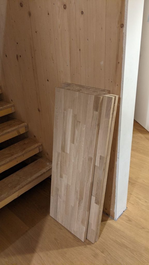 Eiche 4000 x 800 x 26 mm. Das ganze in handliche Regalbretter schneiden lassen (haben sie gut gemacht). Nun kann ich das Einbau-Regal in der Vorratsraum bauen. 35,50 € pro Brett find ich ganz akzeptabel wenn man nicht zu OSB greifen möchte.