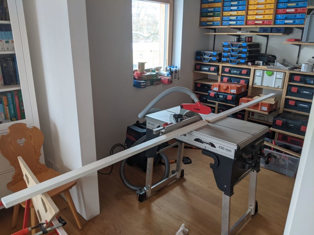 Ich fürchte so kann das nicht die nächsten 100 Meter weiter gehen. Allein das Säge drehen… vielleicht baue ich einen Schiebeschlitten mit Anschlägen um die Sache etwas zu erleichtern…