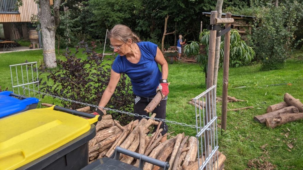 Illegaler Einsatz der top-handle-Säge (geht aber super 😉 – und schon ist der neue Holzstapel einigermaßen frisiert.