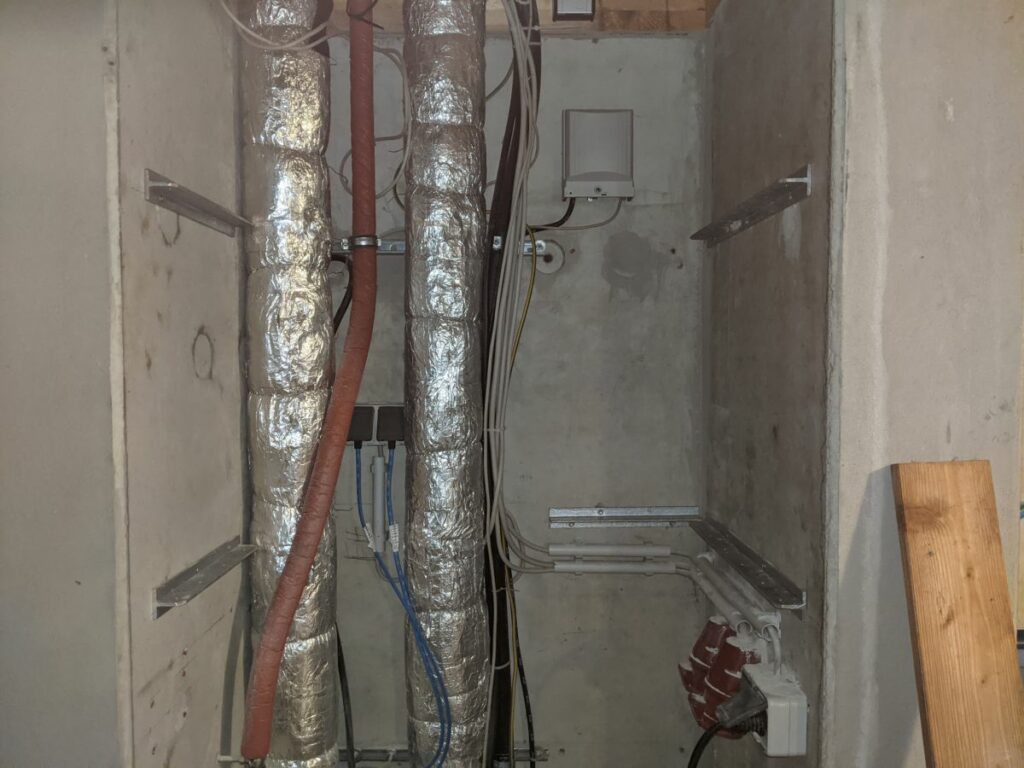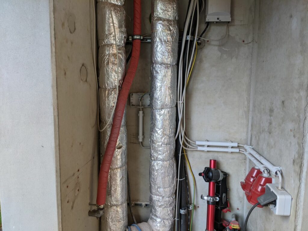 Nun ist zumindest der Anschluss der Begleitheizung aus dem Weg und sicher aus dem Hochwasserbereich.