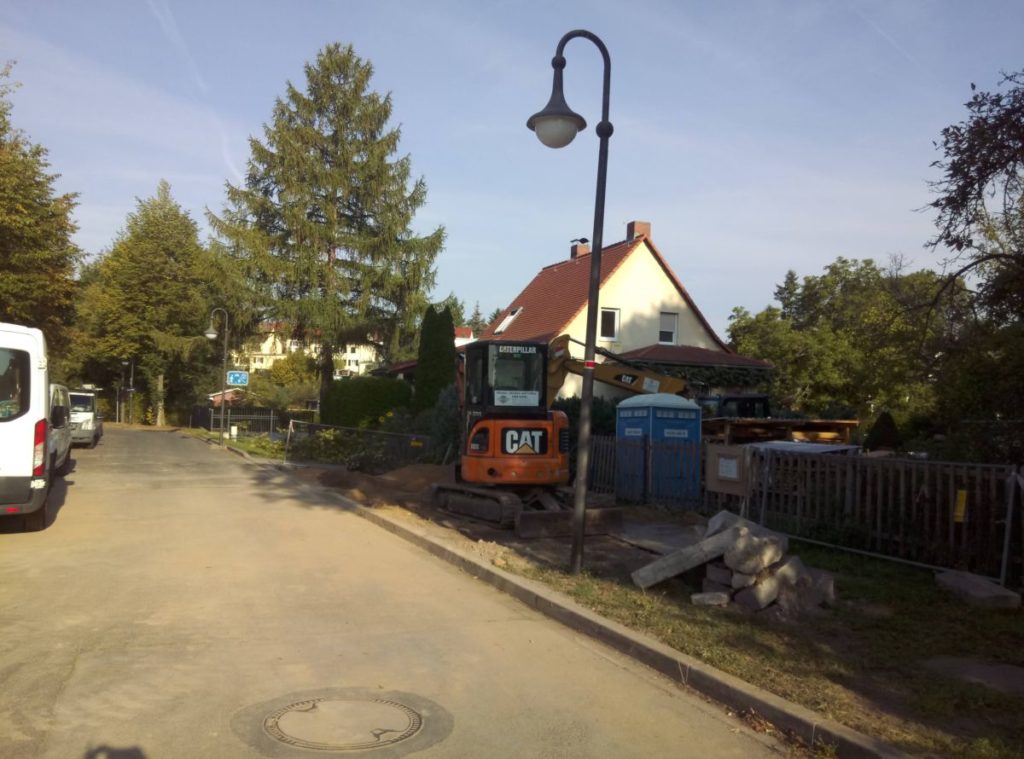 Die Straße ist schon wieder zu und die Einfahrt wird vorbereitet.