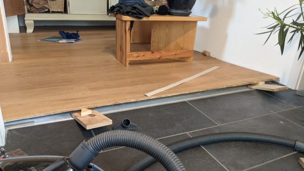 Die Ecken im Fußboden müssen geklebt werden – alles mangelnde Planung.