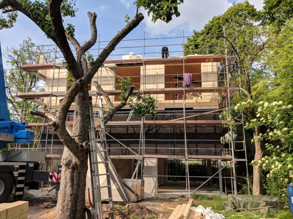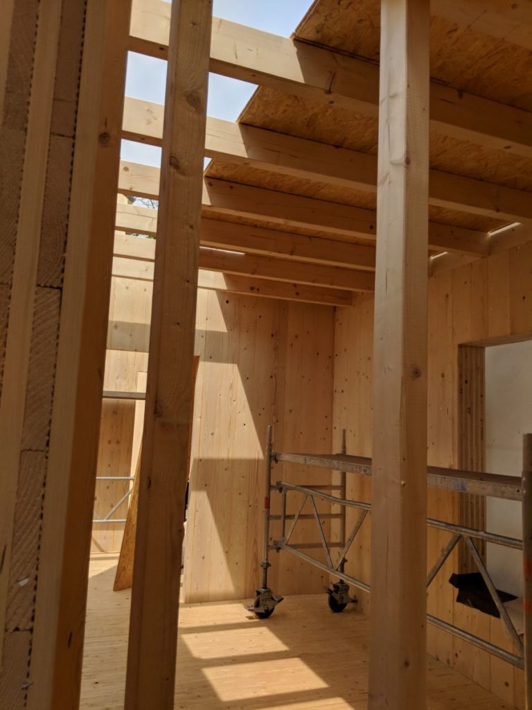 Heute wurde die Decke des 1. OG mit den Wänden ausgerichtet und alles verschraubt.
