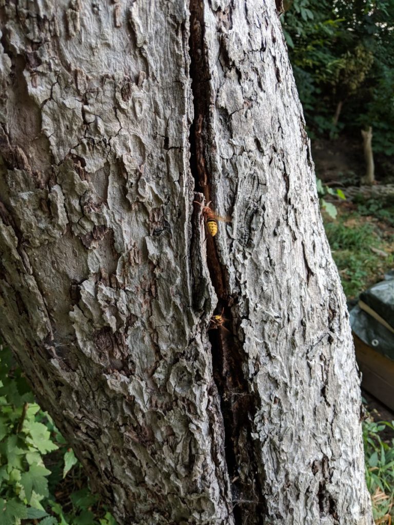 Wesentlich spannender als das Spacheln sind die Hornissen im alten Apfelbaum.